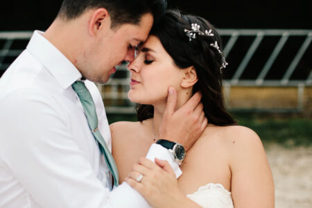 Sam & Charlie were married in June at the beautiful, Hook House Farm. Hook House Farm is a completely dry hire, as when it’s not being a wedding venue it’s a fully working farm. Complete with animals, farming equipment and hay bales!
