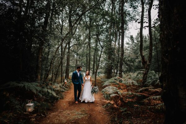 Agnes & Francios beautiful outdoor forest wedding elopement with Swedish vibes, simple details and a Sperry tent.